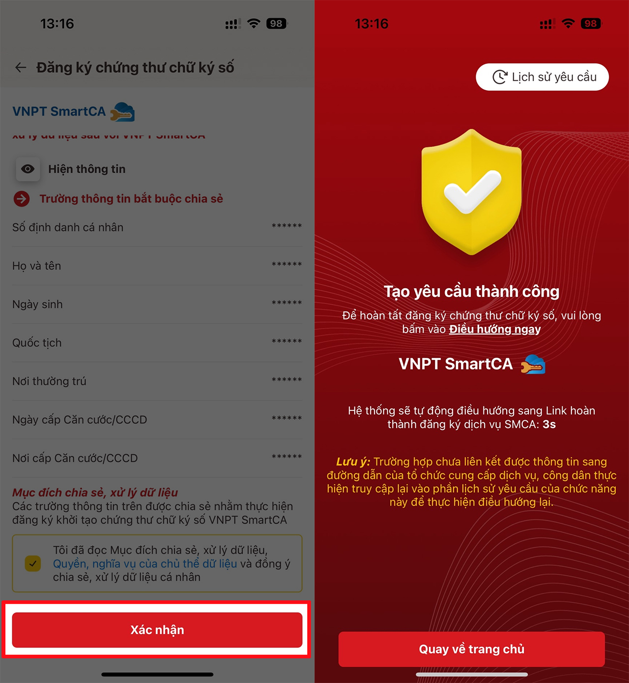 Bước 4: Xác nhận các thông tin là bạn đã gửi thành công yêu cầu tạo chữ ký số rồi đấy.